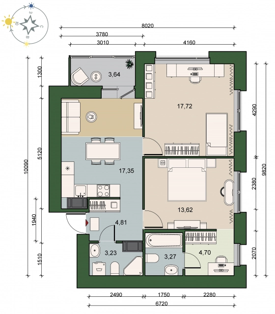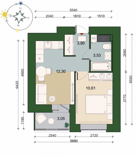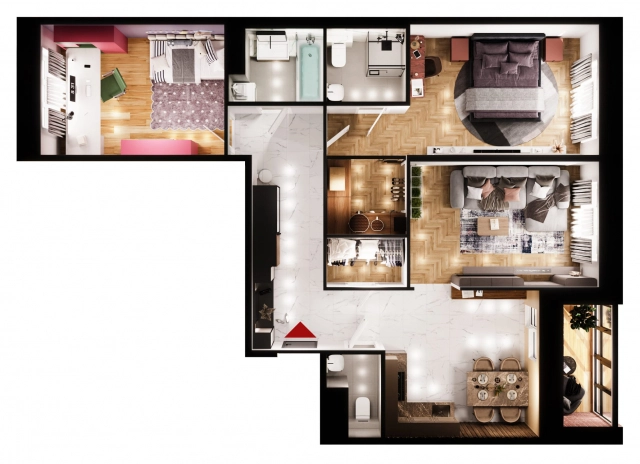 — Большой выбор планировки квартир. От небольших квартир с кухней-нишей, до просторных с кухнями-гостиными, мастер-спальнями, гардеробными. Есть квартиры с 2-мя и 3-мя санузлами.